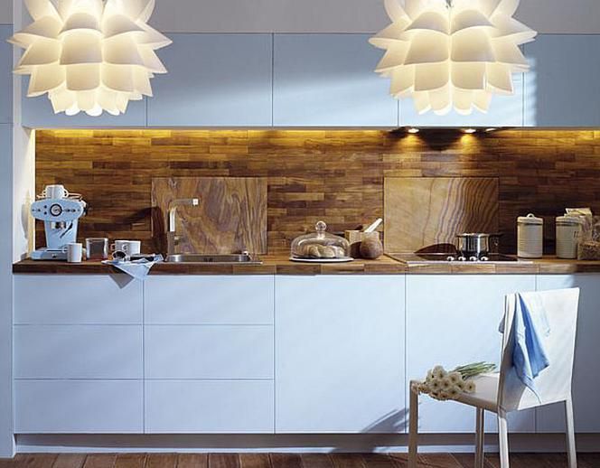 Холодно, но только на первый взгляд. Утренний кофе, выпитый на такой кухне, может проснуться так же быстро, как прохладный душ или открыть окно февральским утром. Сложный в использовании светло-голубой цвет имеет свои скрытые преимущества - вызывает ассоциации с тишиной и природой, успокаивает, успокаивает после напряженного дня, а также способствует общению. Если разбить арктический, компактный цветной фронт плоскостью натурального сырья в теплых тонах, эффект может быть идеальным. Особенно, когда мы извращенно достигаем материала, предназначенного для совершенно другой поверхности. В этом случае клееный экзотический паркетный пол - продолжение влагостойкой столешницы из тика - прекрасно работает между кухонными шкафами вместо безопасной, но оборудованной глазури.