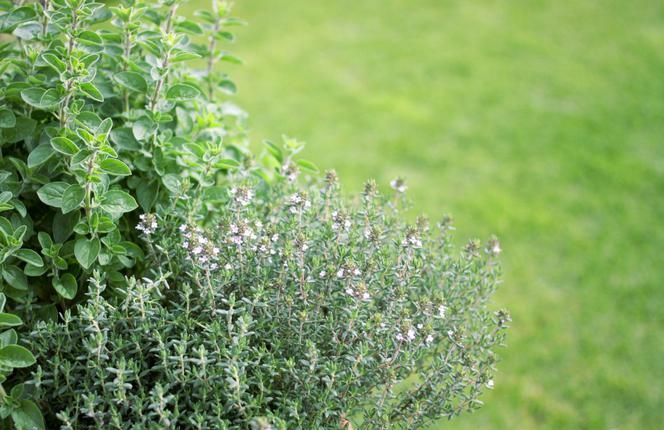 Тимьян обыкновенный - куст растет до 40 см в высоту. Имеет характерные маленькие листья. Тимьян можно выращивать в огороде, гербарии или на гравийном ложе. Пряность отличается интенсивным запахом.
