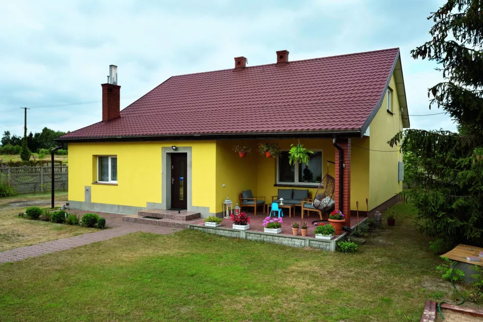 Нынешние владельцы купили этот дом четыре года назад на вторичном рынке. Первые владельцы построили его в 1996 году, поэтому Жанета и Рышард модернизировали его, чтобы он соответствовал современным стандартам. Ремонтные работы они проводили так, чтобы в доме можно было жить постоянно, многое делали сами. Хотели теплые полы, поэтому сняли сосновые доски на лагах, между которыми не было теплоизоляции.В этом пространстве уложили влагоизоляцию, теплоизоляцию, стяжку, в которой были разведены трубы теплого пола, и отделали терракотовой плиткой. Они также заменили старый твердотопливный котел на современный, работающий на экологически чистом угле.