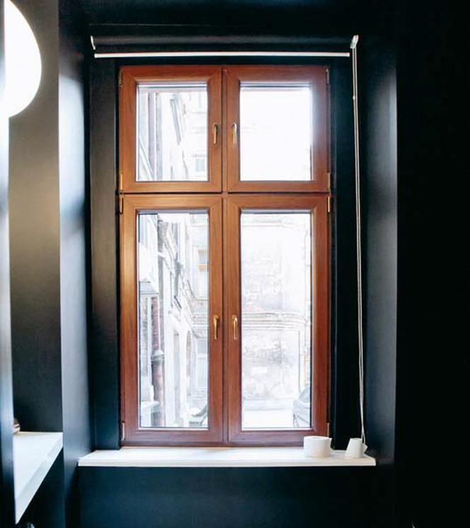 Окна из орехового дерева были выбраны с учетом требований реставратора. Окно закрыто черной шторкой, поэтому салон остается монохромным.