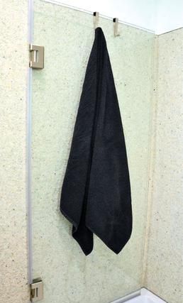 Облицовка стен в ванной комнате выполнена из мраморной крошки Bianco Carrara и закрыта водонепроницаемым покрытием.