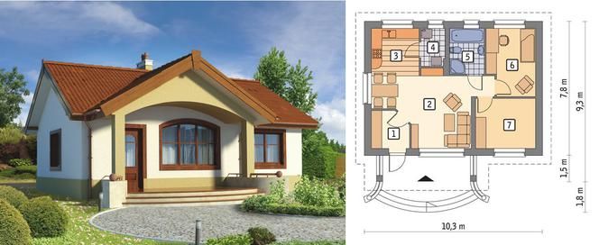 | Полезная площадь: | 63, 4 м 2 | +++ Плюсы: маленький - это красиво. Этот проект является одним из самых дешевых предложений для воплощения вашей мечты о ваших четырех стенах в реальность и альтернативой жизни в многоквартирном доме. Есть все, что нужно, чтобы небольшая семья чувствовала себя комфортно. |