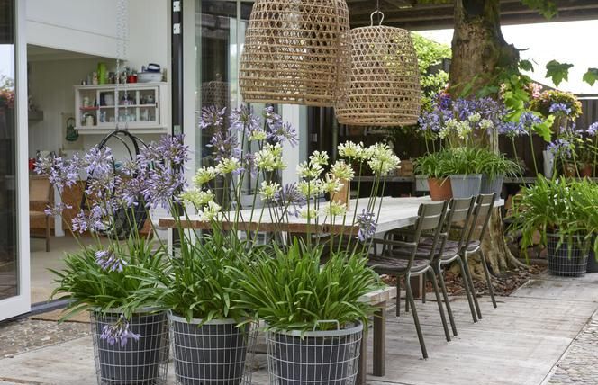 Агапанты, высаженные в горшках, создают эффектное украшение террасы.